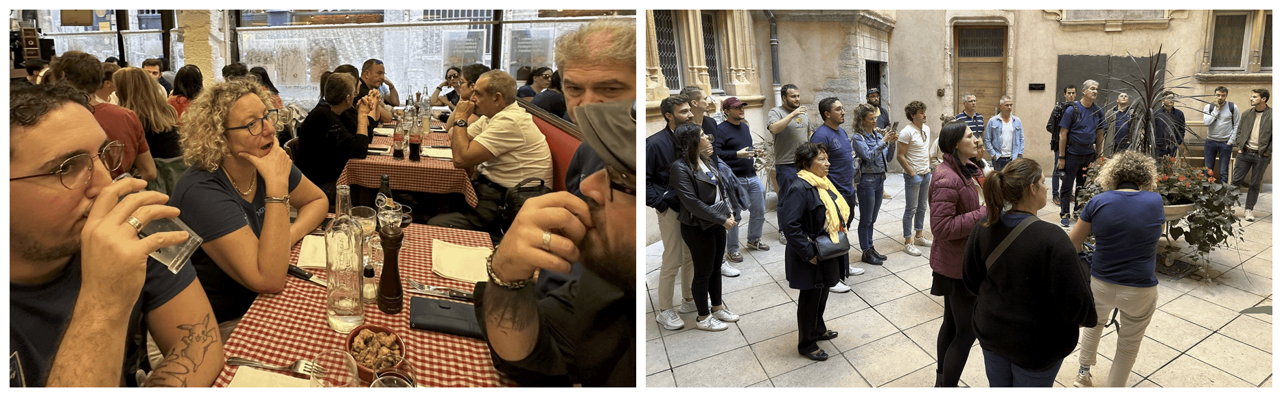 Pour se restaurer le midi, l’équipe avait « poussé le bouchon » et les ont amené dans un typique « bouchon lyonnais » : « Le Musée ». Une pause déjeuner qui fut un régal culinaire et culturel animé par l’un des serveurs qui improvisa une visite de la traboule.